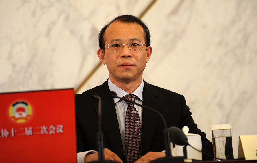 3月2日,全國政協十二屆二次會議新聞發布會在人民大會堂一層新聞發布廳舉行。圖為全國政協辦公廳新聞局局長張敬安。新華網/中國政府網 翟子赫 攝