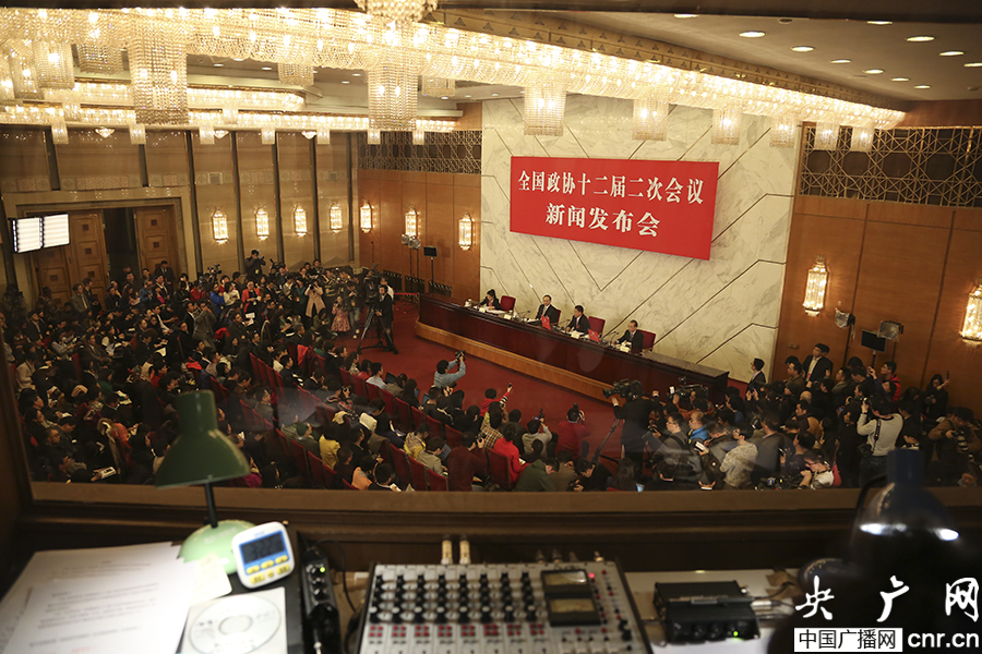 全國政協(xié)十二屆二次會議新聞發(fā)布會現(xiàn)場(央廣網(wǎng)記者 涂傲 攝)