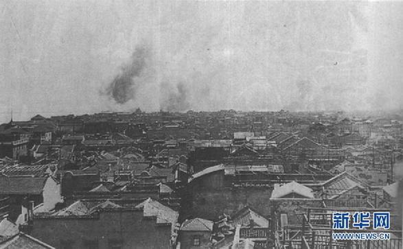 被日軍轟炸的漢口。新華社發(第二歷史檔案館提供)