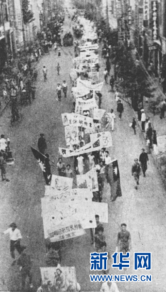 三鎮民眾舉行保衛大武漢游行。新華社發(中國第二歷史檔案館提供)