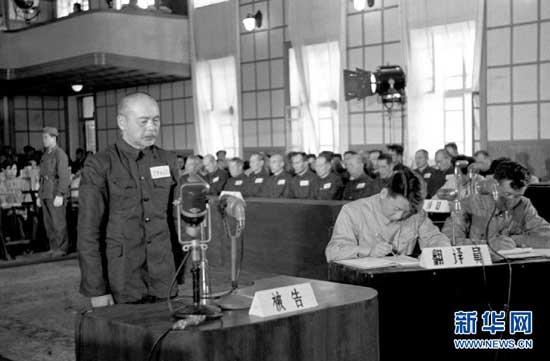 資料圖:1956年7月1日至7月20日,中華人民共和國最高人民法院特別軍事法庭在沈陽審判偽滿洲國國務院總務長官武部六藏等28名日本戰犯。這是宇津木孟雄在法庭上。 2014年7月31日,中央檔案館公布日本戰犯宇津木孟雄的侵華罪行自供提要。
