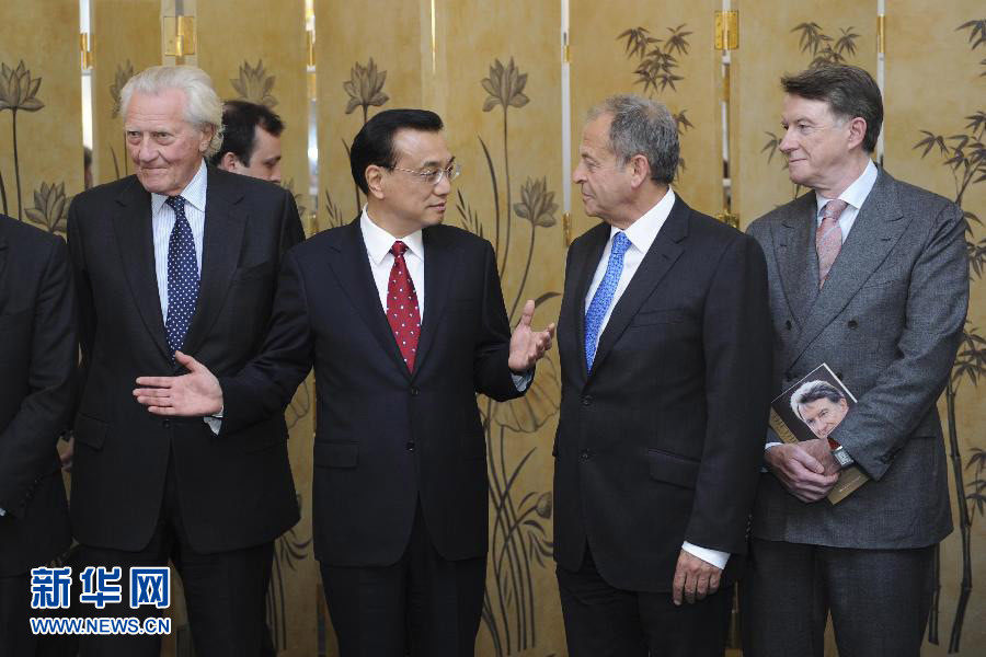 6月18日,國務院總理李克強在倫敦會見英國48家集團俱樂部主席佩里(右二)和“青年破冰者”代表。   新華社記者 張鐸 攝