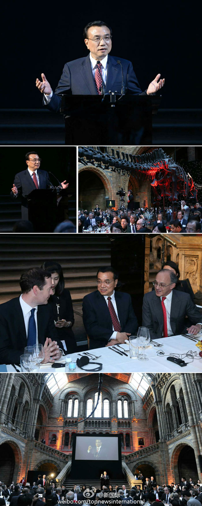 新華網北京6月18日電 據新華社“新國際”微博報道,李克強17日在倫敦的自然歷史博物館出席英中工商界歡迎晚宴并致辭。李克強說,訪英行程不到24小時已碩果累累。中英簽署多項政府間和商業協議,但這不是簡單的買賣關系,而是有質量、更深入的投資關系。中英合作不僅雙贏,并會走向第三方,讓世界受益。