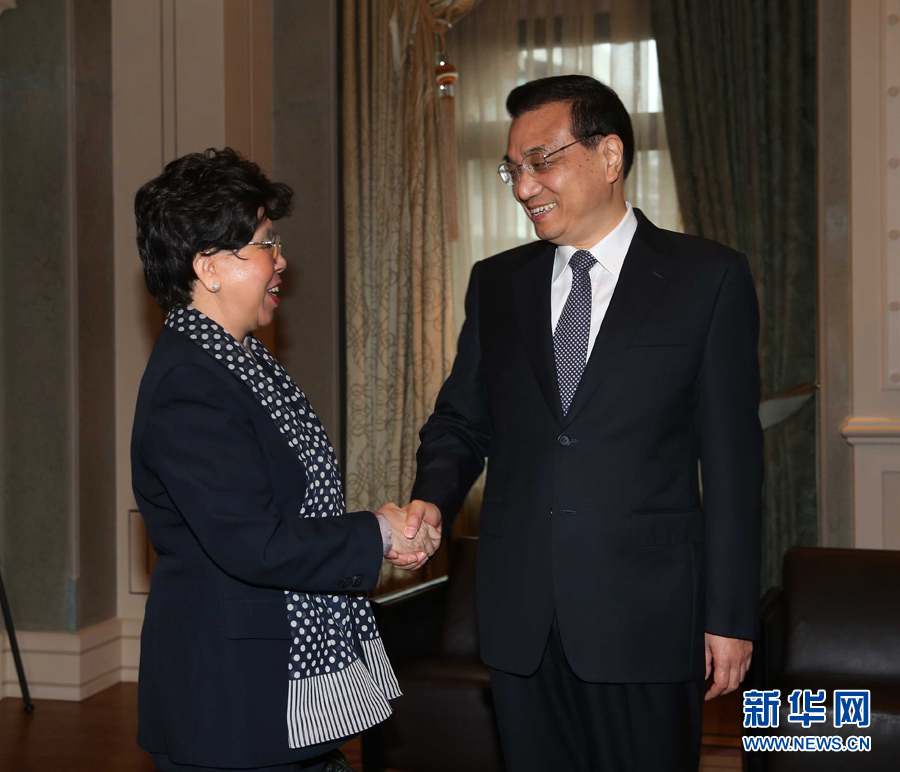 李克強會見世界衛(wèi)生組織總干事陳馮富珍