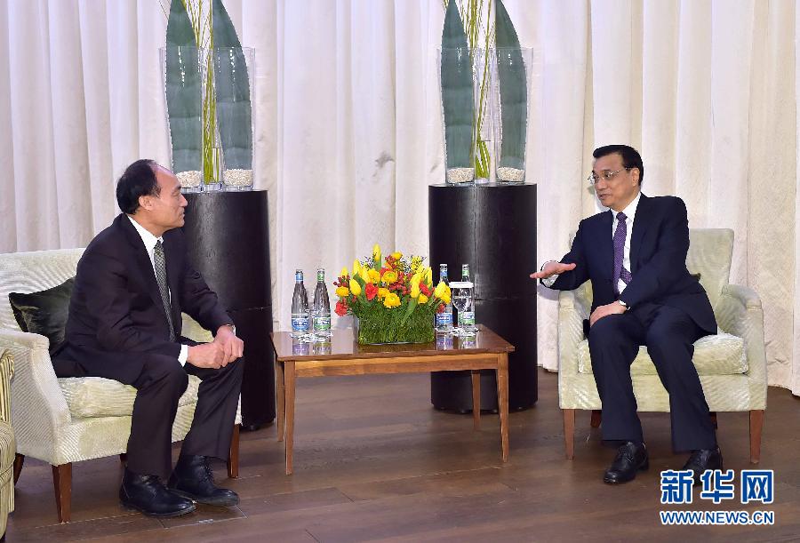 1月22日,中國國務院總理李克強在瑞士蘇黎世會見國際電信聯盟秘書長趙厚麟。 新華社記者 李濤 攝