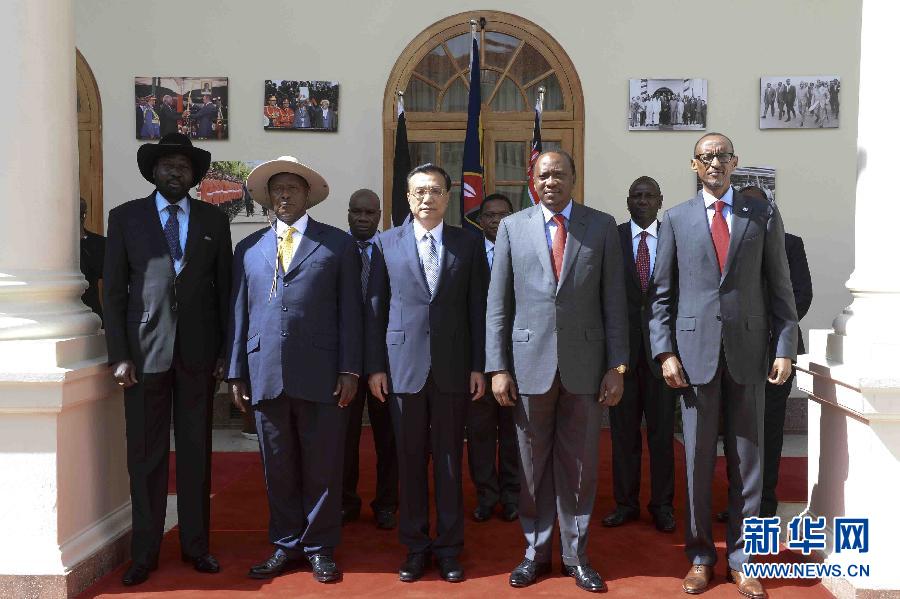 新華社內羅畢5月11日電(記者 張藝 俞錚)國務院總理李克強11日上午在內羅畢國家宮與肯尼亞總統肯雅塔、烏干達總統穆塞韋尼、盧旺達總統卡加梅、南蘇丹總統基爾等東非地區國家領導人,以及坦桑尼亞、布隆迪、非洲開發銀行代表共同出席肯尼亞蒙巴薩至內羅畢鐵路項目中肯共同融資協議簽字儀式并講話。該項目將由中國公司承建。