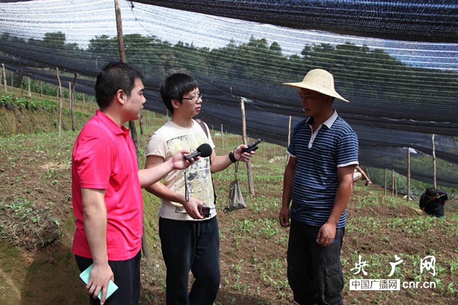 記者與苗圃中正在栽種草果苗的農戶聊天-王茂盛攝