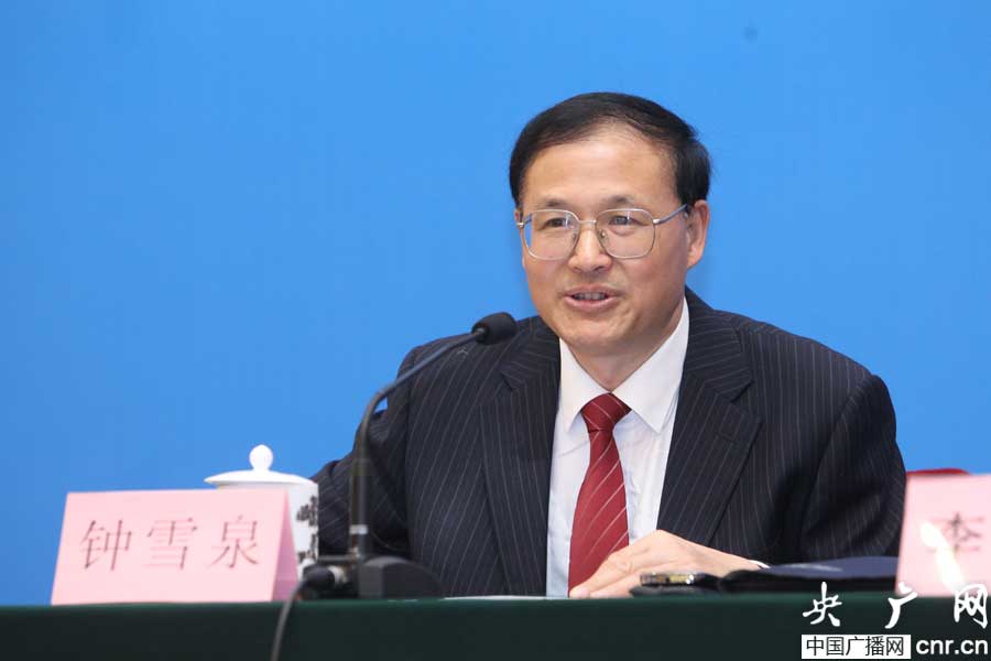 圖為新聞發(fā)布會主持人、全國人大常委會辦公廳新聞局副局長鐘雪泉。