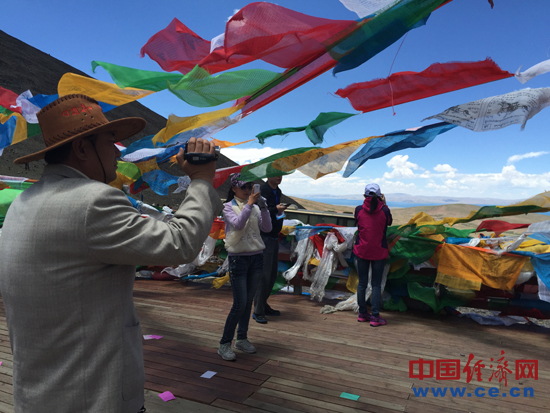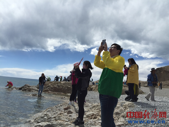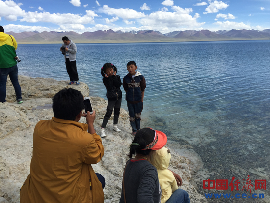 游客在納木錯(cuò)湖邊拍照留影。(中國(guó)經(jīng)濟(jì)網(wǎng)記者 代玲攝)