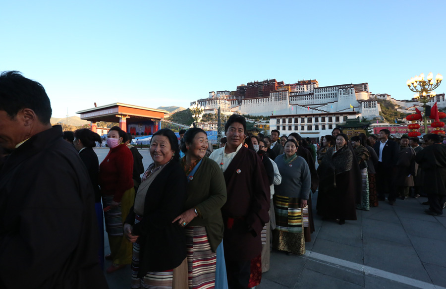 今年是西藏自治區(qū)成立50周年。9月8日上午10時(shí),西藏自治區(qū)成立50周年慶祝大會(huì)在拉薩市布達(dá)拉宮廣場舉行。圖為參加慶祝大會(huì)的群眾正在入場。新華網(wǎng) 田富升 攝
