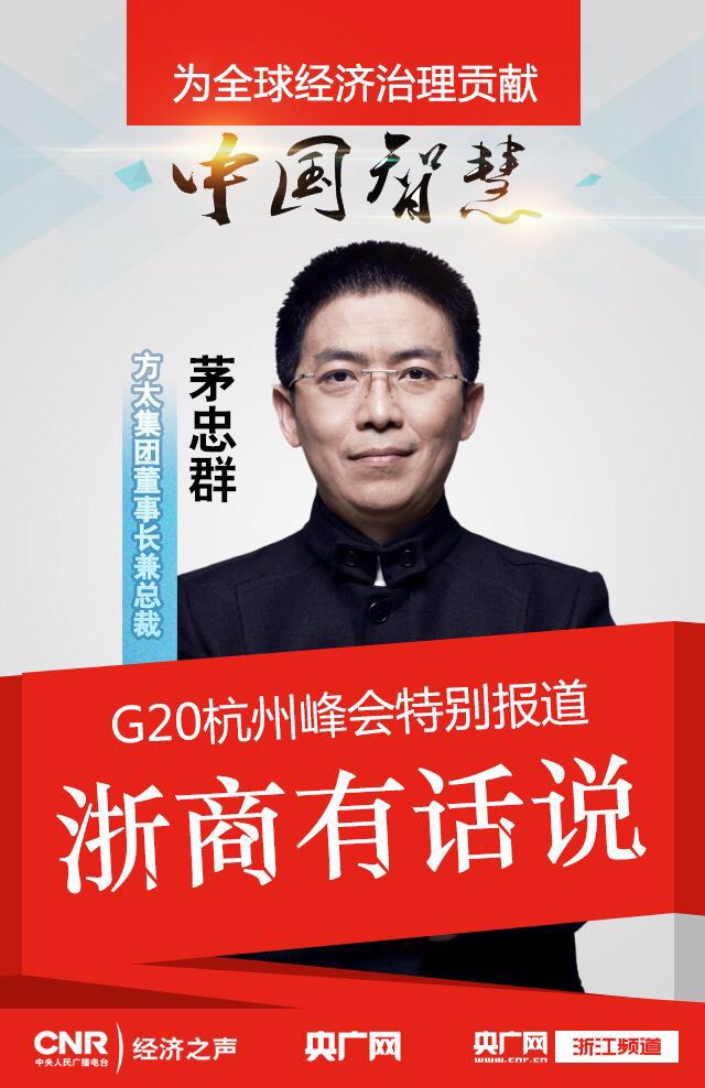 經(jīng)濟(jì)之聲:茅總,9月4號(hào)、5號(hào),世人矚目的G20峰會(huì)要在杭州召開(kāi),您作為一個(gè)浙江人,浙江的企業(yè)家,有沒(méi)有感受到G20峰會(huì)給我們的工作、生活帶來(lái)的變化呢?