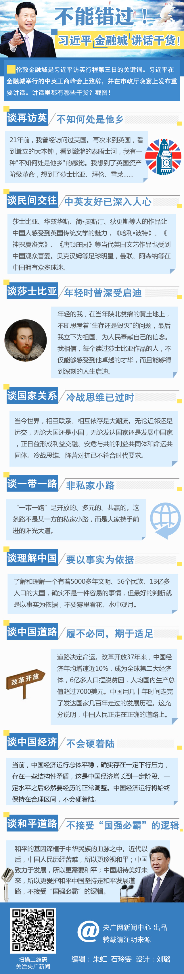 倫敦金融城是習(xí)近平訪英行程第三日的關(guān)鍵詞。習(xí)近平在金融城舉行的中英工商峰會(huì)上致辭,并在市政廳晚宴上發(fā)布重要講話。講話里都有哪些干貨?戳圖!